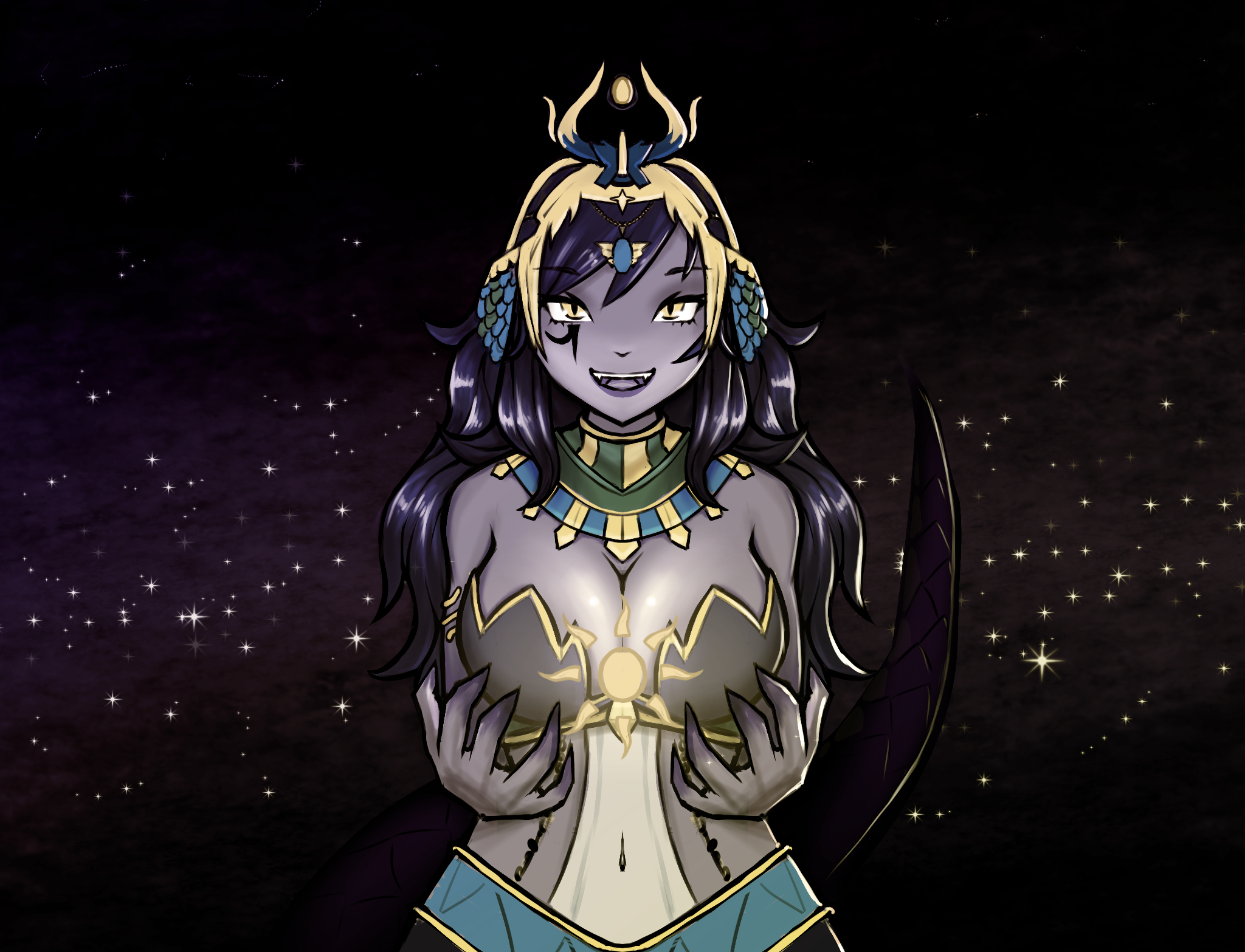 I did some fanart for one of my favorite VTubers! Check out her stuff: Vexoria the Sun Eater on Twitch!