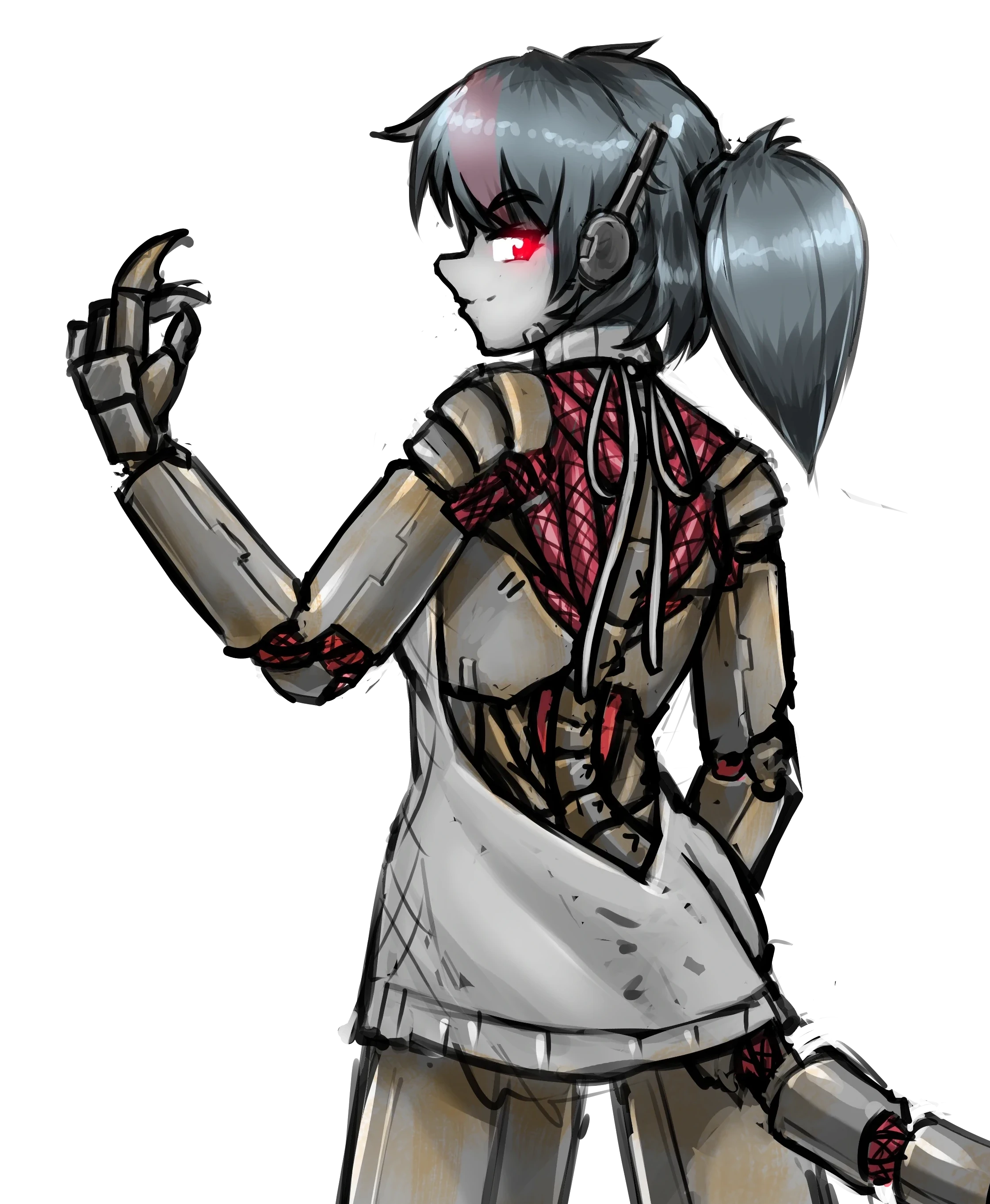 A digital illustration of a woman with a robotic body wearing the "virgin killer" sweater.